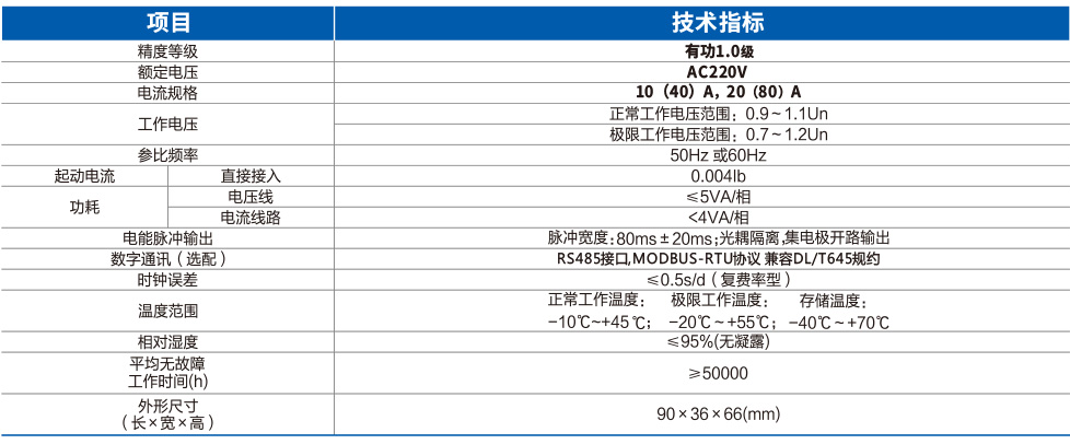 该电能表具有体积小、精度高 、 可靠性好 、安装方便等优点,性能指标符合国际GB/T17215、GB/T17883和电力行业DL/T614对电能表的各项技术要求。